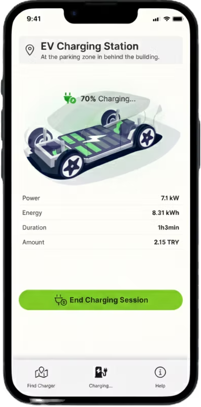Aracınız şarj olurken, gerçek zamanlı takip sistemini kullanarak şarj durumunu izleyebilir, gerekli kontrolleri gerçekleştirebilir ve şarj sürecini daha verimli hale getirebilirsiniz.